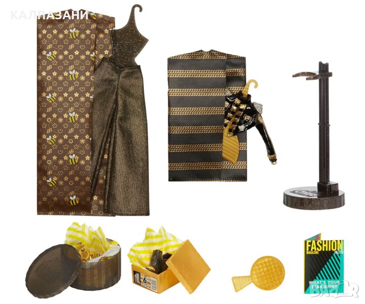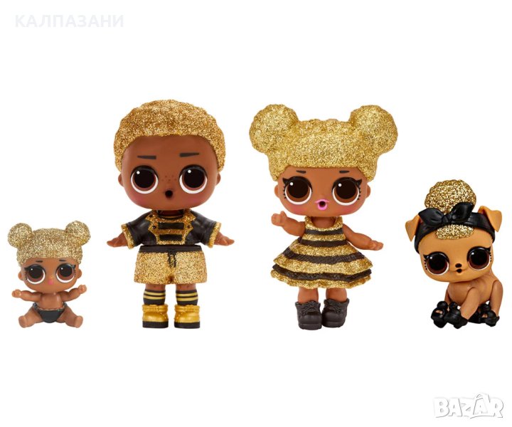 Кукли и цели 45 изненади са заключени в златен куфар LOL Surprise. В куфара можем да намерим цялото семейство Royal Bee - една голяма кукла OMG, две мини кукли, една сестра и едно животно. LOL Gold Suitcase е идеален за всяко момиче, което колекционира кукли LOL Surprise или просто обича да си играе с кукли.