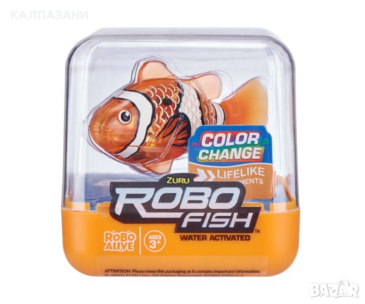 Малка, интелигентна, технологично усъвършенствана рибка - която прилича на истинска! Просто я поставете във водата и рибата ще започне да плува сама, отразявайки движенията на истинска риба! Комплектът включва и комплект батерии. Интерактивна играчка Zuru RoboFish е малка, умна и компактна рибка, създадена с помощта на най-новите технологии. Тази играчка риба във водата се държи точно като