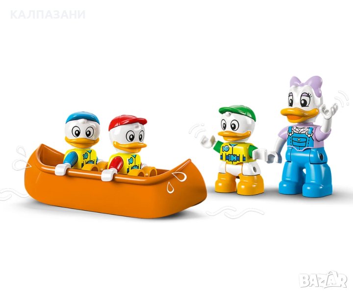 Изпълнете времето за игра с часове радостно обучение с комплекта LEGO® DUPLO® ǀ Disney Мики и приятели – лагерно приключение (10997). С множество творчески дейности, забавната играчка за конструиране помага на малките деца на възраст 2+ да научат за издръжливостта и работата в екип, като се присъединят към патицата Дейзи и нейните племенници на едно изпълнено с екшън къмпинг пътуване. Комплект за конструиране и игра, който развива въображението Малките деца тръгват на приключение на открито с патицата Дейзи и Хюи, Дюи и Луи в кемпер, който може да се управлява. Те намират карта на съкровище и се придвижват по реката с кануто си, покрай нестабилния мост, който заплашва да преобърне камък във водата. Те откриват съкровището зад водопада за конструиране, след което палят лагерен огън и се сгушват в палатката. Научване на житейски умения Малките деца развиват своите фини двигателни умения, като изграждат образователната играчка за конструиране. Разиграването на семейни сцени помага на децата да се научат на емпатия, себеизява и сътрудничество, а родителите могат да споделят важни етапи от израстването, като се присъединят към наситената с екшън игра.
