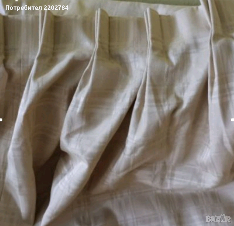 Размери на едно перде -ширина 140см, дължина 230см. Два броя.За тръбен корниз.