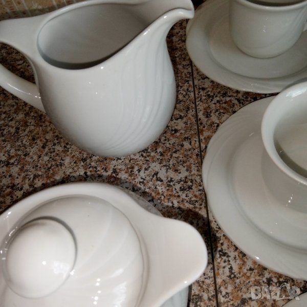 Български порцеланов сервиз за кафе бял 14 части от соца.