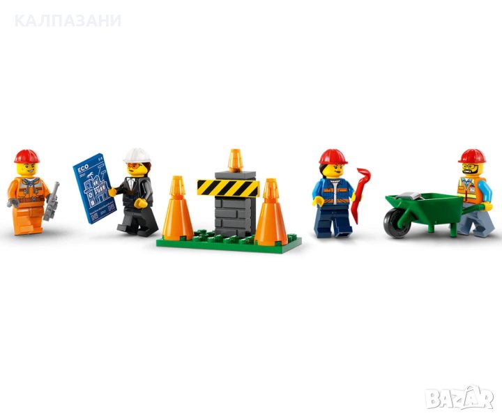 - Какво има в кутията? – всичко, от което децата се нуждаят, за да построят транспортер, кран с разбиваща топка, самосвал и изоставена къща, плюс 3 минифигури на работници и забавни аксесоари за ролева игра с въображение;