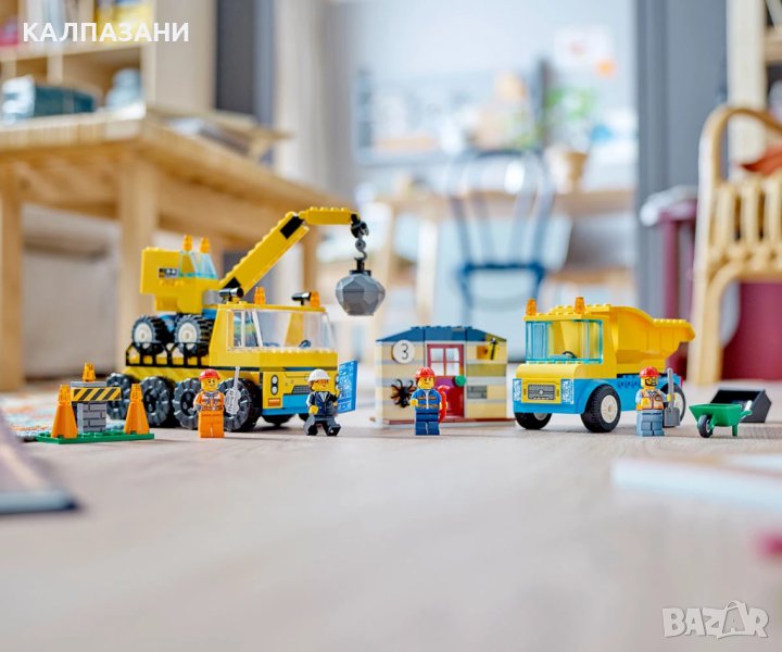 - Комплект със строителни играчки за деца над 4 години – присъединете се към вашето дете в предучилищна възраст за забавно конструиране и игра с комплекта LEGO® City Строителни камиони и кран с разбиваща топка (60391);