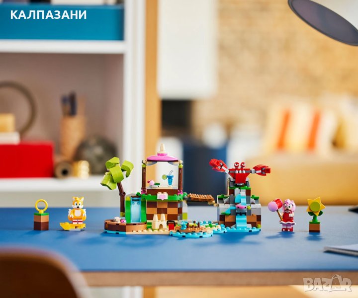 Децата на възраст над 7 години, които обичат Соник или да се грижат за животни, могат да се забавляват много с комплекта с играчки LEGO® Sonic the Hedgehog™ Островът за спасение на животни на Ейми (76992) за деца над 7 години. Творческата игра е лесна, докато децата изследват островната сцена и помагат на Ейми и Тейлс да се грижат за своите приятели животни. Има много неща, на които да се наслаждавате, докато героите се плъзгат в басейна, строят пясъчни замъци или се радват на въртележката. Много неща за откриване Децата могат да използват подвижния мост и капана на водопада, за да победят бадника, който се опитва да открадне животните. Има и тайна врата, която води до кухнята и местата за спане, където децата могат да се грижат за животните, които са били спасени. Множество начини за игра Бързият екшън и приключенията се срещат с творческата игра с комплектите LEGO Sonic the Hedgehog™. Феновете на Синята светкавица с удоволствие ще създават сцени, вдъхновени от любимите приключения на Соник. Когато дойде време за промяна на темпото, децата могат да се наслаждават на игри на въображението, като се грижат за животните приятели на Соник.