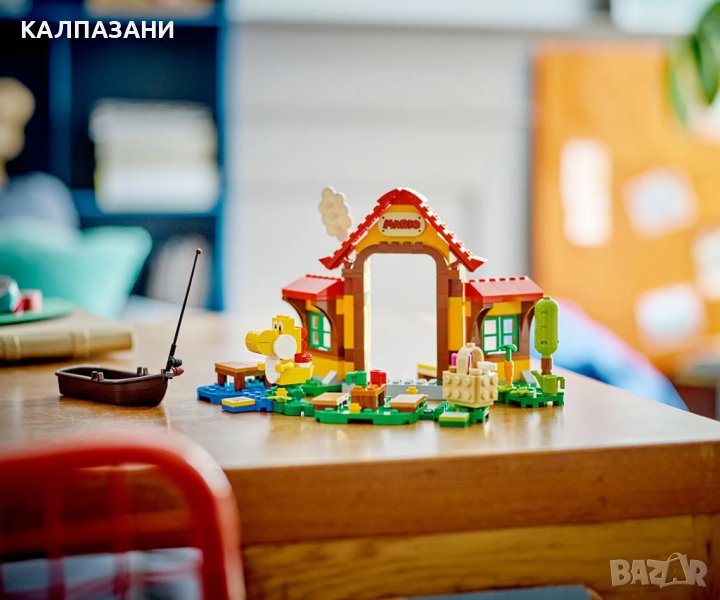 Децата могат да създадат забавно ниво със страхотния LEGO® Super Mario™ Комплект с допълнения Picnic at Mario's House (71422). Детайлните къща и градина от тухлички предлагат богати възможности за ролева игра и начини играчите да печелят цифрови монети с техните интерактивни фигури LEGO® Mario™, LEGO® Luigi™ или LEGO® Peach™ (не са включени). Кажете „Здравей“ на жълтия Yoshi, спете на леглото, „яжте“ бисквитки от кошницата за пикник, „полейте“ зеленчуците в градината, играйте хокей или отидете на риболов с лодката. Забележка: за интерактивна игра е необходима начална писта 71360, 71387 или 71403. Превъзходен подарък Колекционерският комплект за игра е страхотен подарък за деца над 6 години, които обичат новостите. Изтеглете приложението LEGO Super Mario за инструкции за построяване, вдъхновяващи съвети и други забавни неща, за да подобрите творческото изживяване на децата. Безкрайни възможности Началните писти и комплектите с допълнения LEGO Super Mario позволяват на децата да разширяват, да престрояват и да създават уникални нива за часове забавно събиране на монети.