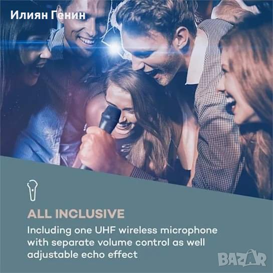 Включва всичко: включва UHF безжичен микрофон с отделен контрол на силата на звука и контролируем ехо ефект
