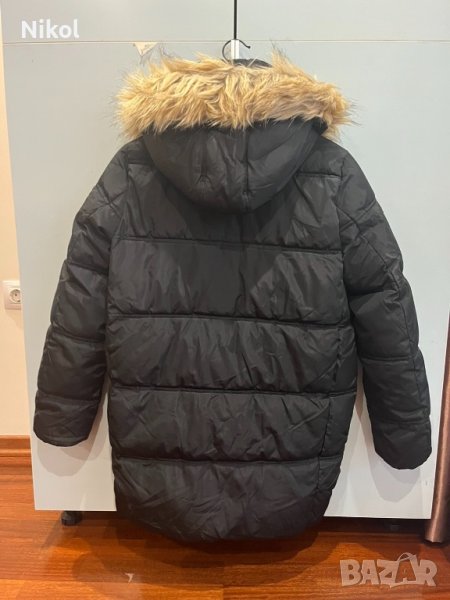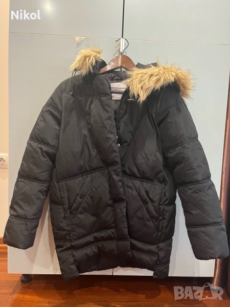 Зимно дамско яке- много топло, подходящо за ежедневито в студените зимни дни.Размер XS , но отговаря на S към M. Дължина от яката до долу-74 см, дължина на ръкава-60см, гръдна обиколка-90 см. Цвят - черен