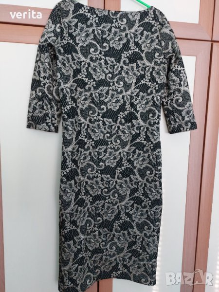 Красива рокля в красив черно-бежов десен, размер S/М, стегната материя.