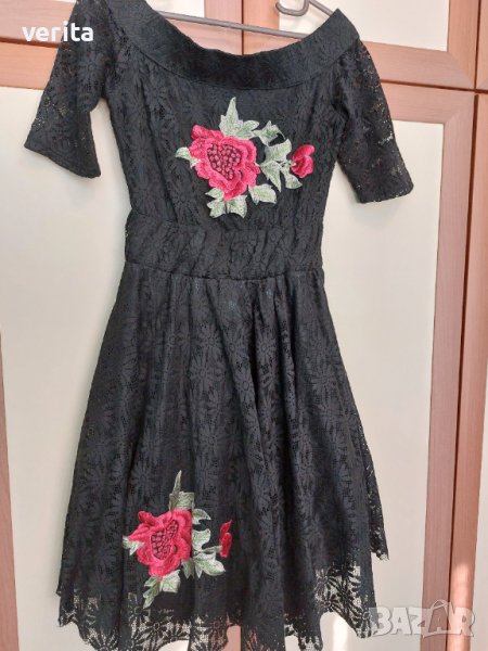 Дантелена черна рокля Lilia, размер М с ластици на гърба.