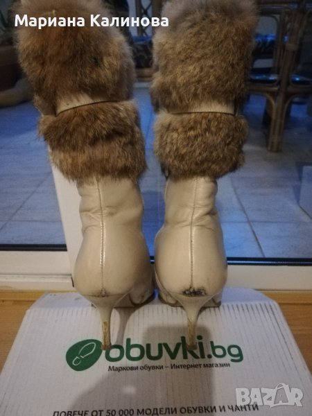 Сн. 3,4, и 5 Хем елегантни, хем удобни, хем топли боти в бежово с естествен пух и топла подплата, ток 6 см. Не бих се разделила с тях, но вече са ми малки. Имат нараняване отзад на петата от шофиране и надраскване на места на токчетата - показано на снимка 5. Продадени!