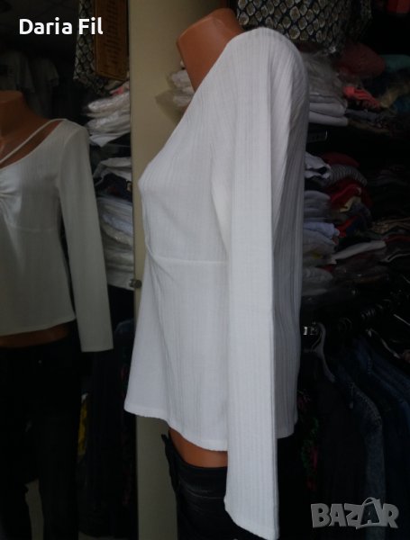 Бяла блуза от еластично трико с ефектно деколте , снимка 1 - Тениски - 43262340 Бяла блуза от еластично трико с ефектно деколте , снимка 2 - Тениски - 43262340 1/2