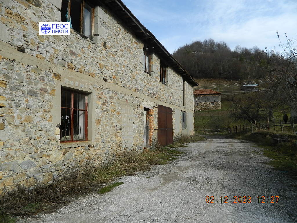 Продава се каменна стопанска постройка, на два етажа, находяща се в края на населеното място. Използвана е като сушилня за тютюн. На първи етаж разпределението е следното: помещение, използвано за магазин, помещение използвано за сортиране /в момента се ползва като гараж и склад/, както и подход към второ ниво. Разпределение на второ ниво - две помещения, използвани за сортиране на тютюн и малък офис. Всеки етаж е със Застроена площ 158 кв.м. В цената влиза и поземлен имот с площ 365 кв.м. с лице на асфалтов път. Възможно преустройство за жилищни цели. Цената подлежи на коментар.