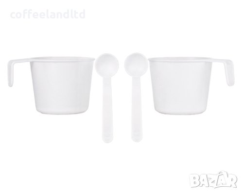 Комплектът включва 2 чаши и 2 чаени лъжички