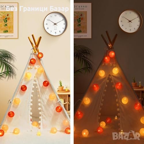 - LED феерични светлини с дължина 3.8м и 20 памучни топки