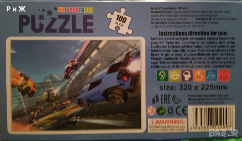 Интерактивен пъзел със спортни коли. Състои се от 100 части.