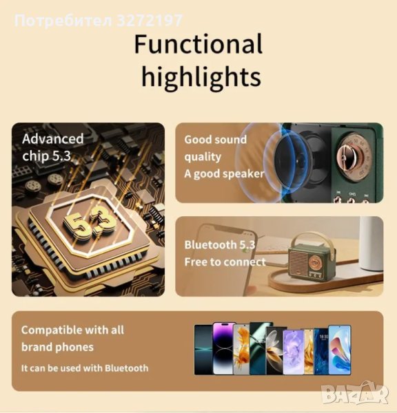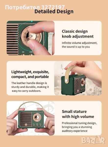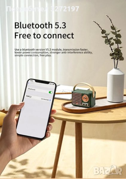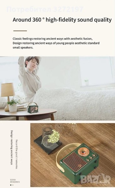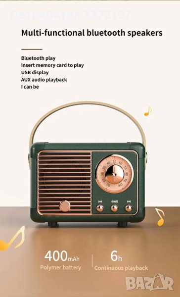 Преносим Ретро Bluetooth високоговорител,безжичен бас,субуфер,водоустойчив