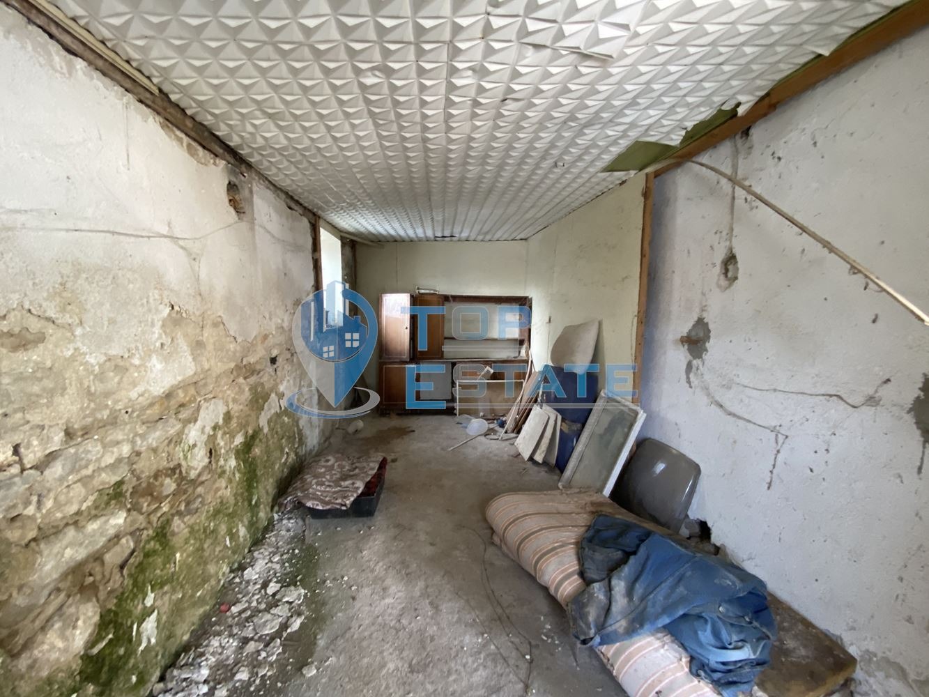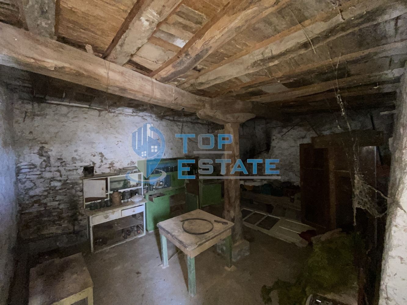 дялан камък, като на него са разположени мазе и складово помещение. Долепена до основната къща е жилищна постройка /40 кв.м/ състояща се от вестибюл, всекидневна с трапезария и кухнеска част, баня и тоалетна /заедно/. Всички дървени дограми са подменени с нови PVC. Дворът е с площ от 450 кв. м, като в него са ситуирани стопанска постройка /74 кв.м/, навес и сервизно помещение. Номер на оферта: 1917. We speak English.