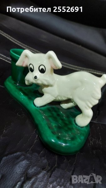 Фигура на куче. Наличие на фирмен надпис. Размери- 17см./ 9см/ 9см.