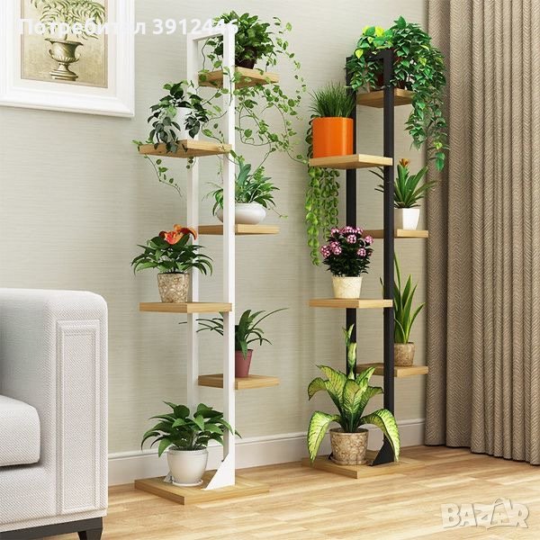Размери:1,80см.височина място за поставка на саксиите 18x18см. Без боя 65лв.С боя бяло,черно венге,орех,кафяво,кестен или безцветен лак цена 70лв. Изработвам също така и по поръчка с ваши размери изпращам само по еконт опция преглед моля вижте и другите ми обяви.
