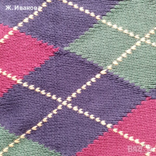 Продавам детски пуловер за ръст 146-158 см. от пред е на ромбове както се вижда на снимката, отзад е тъмно син, не е много тънък, но е от памучна прежда, за деца, които не могат вълнено да носят.