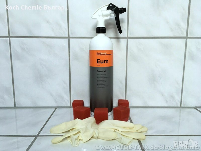 Koch Chemie – Eum – Eulex M- е специален продукт с лек мирис за лесно отстраняване на лепило, дървесна смола и каучукови отлагания, дори от матово боядисани превозни средства, стъклени повърхности и др.