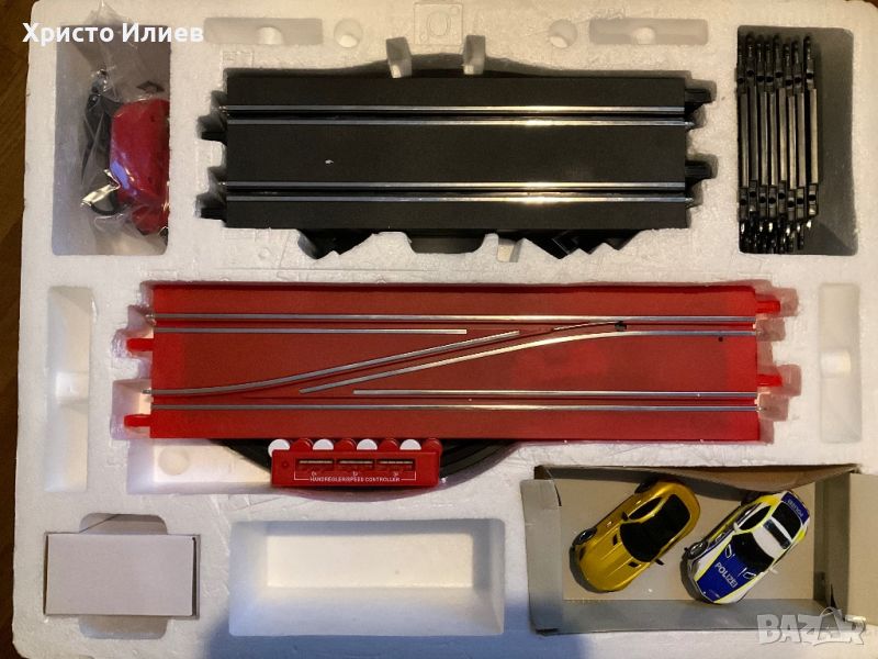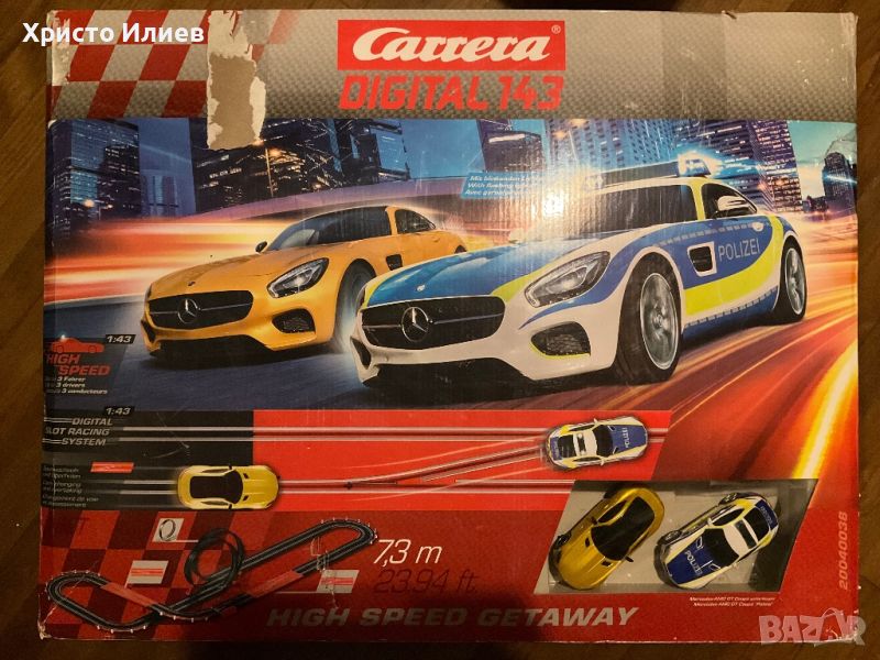 С комплекта състезателна писта Carrera DIGITAL 143 „High Speed Getaway“ състезателна писта с дължина 7,3 метра може да бъде настроена във вашия дом, където до 3-ма пилоти могат да се състезават едновременно. И слот колите, и състезателната писта са в мащаб 1:43 и включват страхотни екшън аксесоари. В допълнение към високоскоростните прави участъци, завой и дигитална смяна на лентата, лупингът също е наистина плавен. Какво би било едно преследване без умели маневри за изпреварване – следователно, благодарение на двете смени на лентите, състезателните съперници могат да опитат дръзка смяна на лентата и да избягат или да настигнат противниковата слот кола отново и отново.