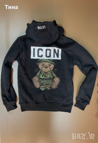 Нова колекция модерни мъжки ватирани суичери с надпис ICON отпред и характерната щампа мече на гърба .
