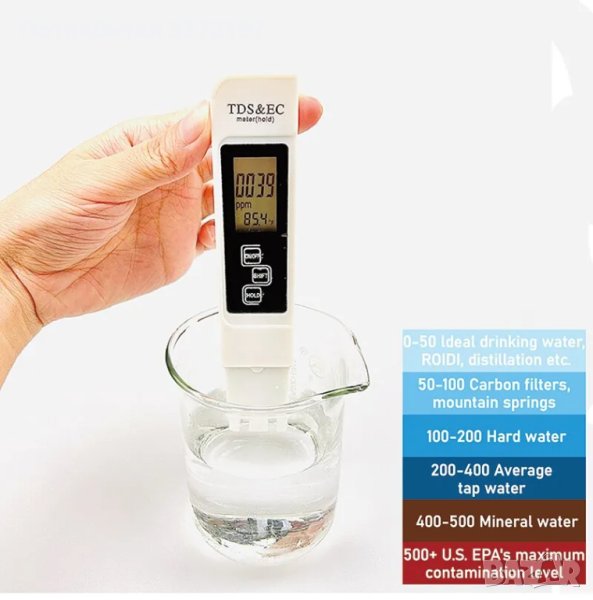 2. TDS инструментът има автоматична температурна компенсация в режим на измерване.