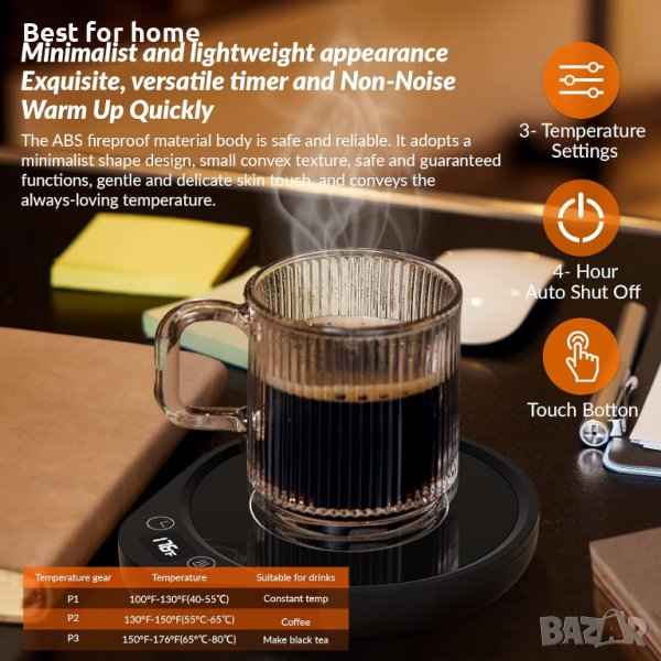 Нагревател за чаши, надграждане на нагревател за кафе и нагревател за чаши за бюро с 3 температурни настройки, повече нагревател за чаши за горещо кафе с таймер и 4H автоматично изключване за запазване на най-добрия вкус за какао, чай, вода, мляко, черно