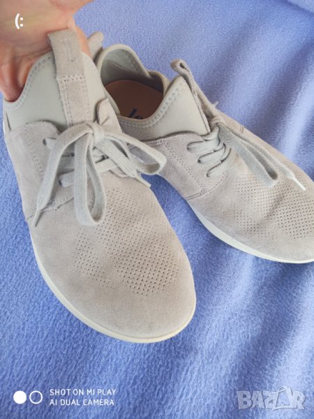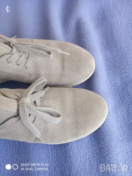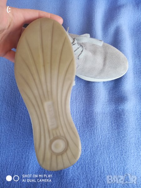 Обувките са в отлично съсътояние.Обувани еди или два пъти.Изработени са от мек естествен велур.Много удобни и комфортни. Сив цвят. Номер 36 и 1/2 с дължина на стелката 23,5см.Цена 80лв.