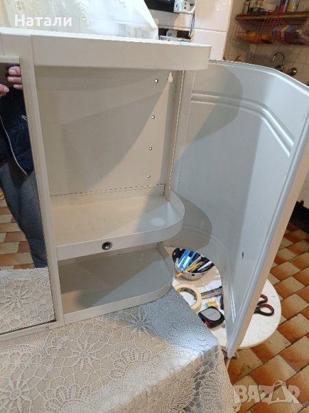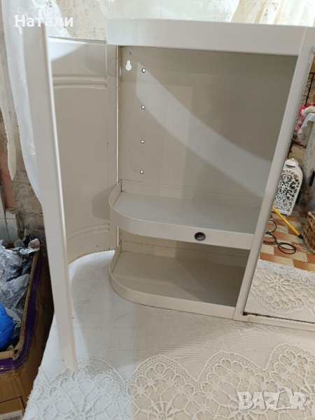 Метален шкаф с вратички и вградено огледало.Размери:Височина 44см.Дължина 80см.Ширина 16см.Забележка:Най отдолу на вратичките.Показано на снимките.