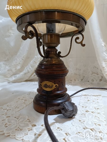 Настолна лампа в стил винтидж.Произведена през 60-те години на миналия век.Размери:височина 40смдиаметър 25смЗабележка:от годините дървената част се е спукала.