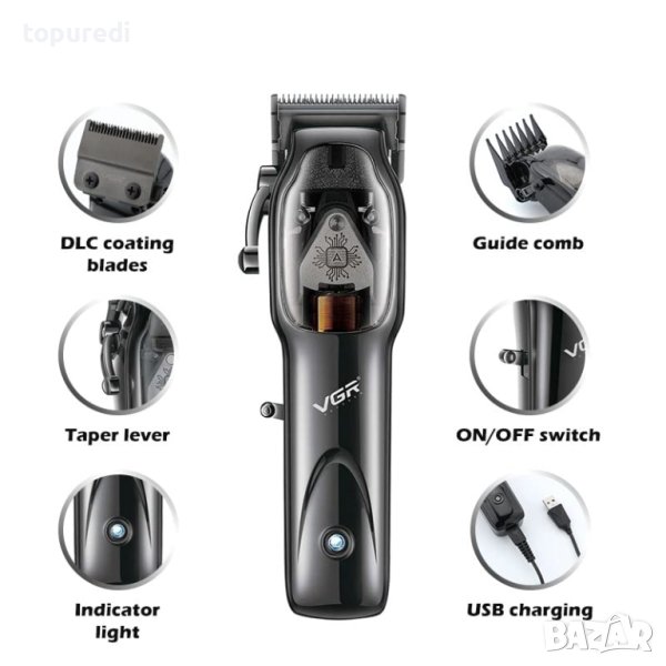 VGR V-653 изненадва както винаги с иновации и изобретателност на най-високи нива, представяйки нов модел от гамата машинки за подстригване, с мощен 9000RPM магнитен мотор. Отличава се с издръжливостта на батерията от около 100 минути и с избледняващо острие, с което можете да извършвате работи (прически) на професионално и безупречно ниво. Има захранване от батерия, което предлага възможност за максимално лесно боравене. Машинката за подстригване VGR V-653 разполага с най-съвременна технология за несравнимо подстригване. С мотор от 9000 оборота в минута, той се превръща в много полезен и надежден аксесоар за всеки професионалист. Използвайте това висококачествено устройство внимателно и осигурете грижа при оптимални условия, за да осигурите дълъг живот на устройството.