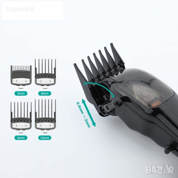 - Пакетът включва: 1 х машинка за подстригване, 1 х стойка за зареждане, 1 х масло, 1 х USB кабел, 4 х първокласни щрангове