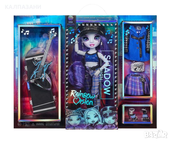 Всички най-добри училища по изкуствата ще представят групи, които да се състезават в световноизвестната музикална битка Rainbow Vision. Крайното състезание за определяне на ЕДИН ПОБЕДИТЕЛ! Надпреварата се нажежава, а рок момичетата от Neon Shadow са вперили очи в наградата. Съберете всичките 3 модни кукли Rainbow Vision-Shadow High Neon Shadow: Мара Пинкет, Ума Ван Хоуз и Харли Лимстоун.