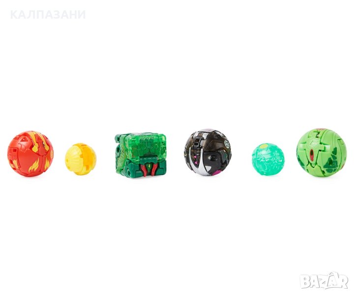 Представяме ви изцяло новия Bakugan Evolutions Battle Strike Pack! Пакетът Battle Strike Pack е най-добрият колекционерски артикул – включващ платинен бакуган, изкован от истински метал, 2 бакугана, 1 геоган, 2 наноган, 6 баку ядра, 3 карти със символи, 3 карти със способности и 3 карти за врата. Има всичко необходимо за събиране, сбиване и повече! Вашият Bakugan току-що стана по-силен от всякога с тези закалени в битки Platinum Bakugan – има по един във всяка опаковка, направен от истински метал! Почувствайте първокласното топче в ръцете си, докато го търкаляте върху BakuCores! Гледайте как вашият Bakugan се отваря и се превръща в свирепо създание! Тези шампиони в тежка категория ще нанесат невероятни щети в битка, както никога досега. Включете се в действие срещу приятели с Bakugan и излезте победител! За изненадваща атака извикайте своя Nanogan, за да засили своя Bakugan и да завладее опонента си! Nanogan може да се прикрепи към всеки Bakugan за мощен тласък в битка. Nanogan разполага с полупрозрачни детайли и страхотен дизайн! Смесете и съчетайте, за да създадете любимата си комбинация и да нанесете невероятни щети в битка. Използвайте включените карти за способности за още повече начини да играете и да печелите бонуси! Добавете всички играчки на Bakugan Evolutions от сезон 4 към колекцията си и създайте свой собствен екип мечти! Изведете битките си на следващото ниво с изцяло новия Bakugan Evolutions Battle Strike Pack!