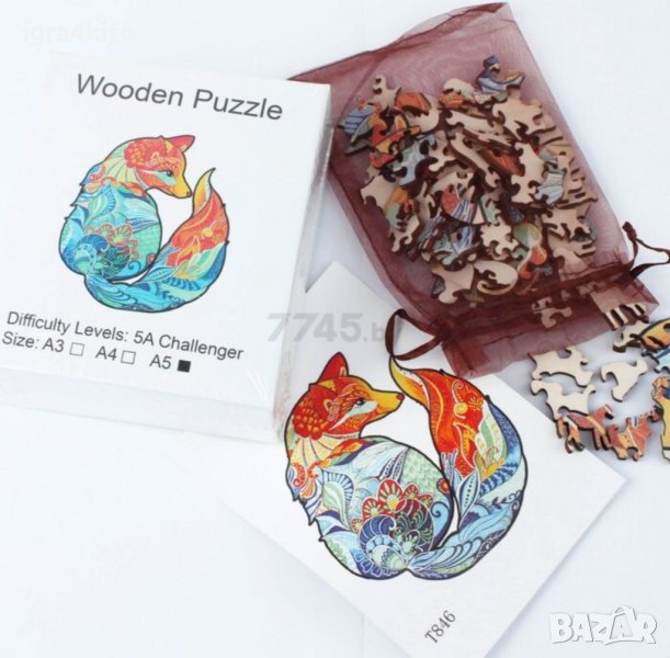 Дървен пъзел животни ЛИСИЦА С ОПАШКА Firefox / А4 формат Размер М