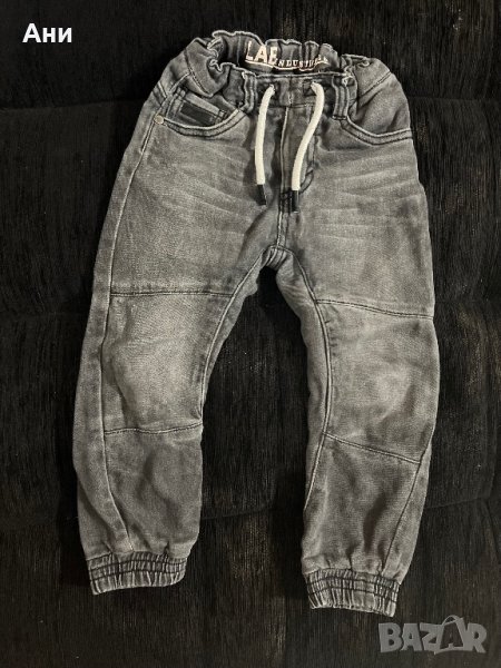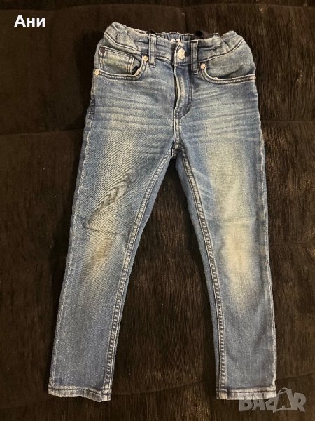 Сините дънки са H&M. Размер 110, но понеже модела е слим, са по-скоро този размер.