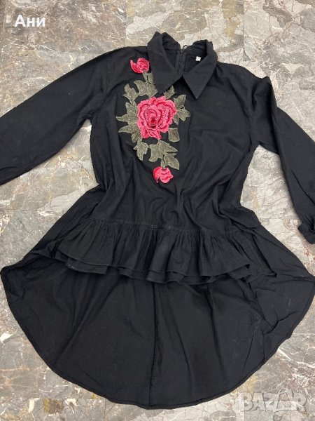 Страхотна асиметрична риза. Моделът е свободен, стои страхотно и с колан. В долната част има къдрици. Размер С.