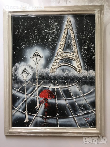 Картина за подарък. Абстрактна картина с маслени бои ”Разходка в Париж” → Обява 43289727