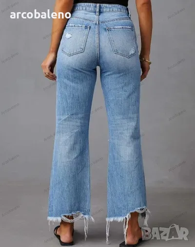 Дамски изпрани скъсани широки дънки. Моля, използвайте ръководството за размер, показано в обявата. Преди да изберете размер, моля, прочетете внимателно всеки елемент от ръководството за размери. Уникален дизайн, класически стил, ежедневни и удобни. Подходящи за излети и свободно време. Размерът се измерва ръчно и грешката от 1-3 см е нормална.
