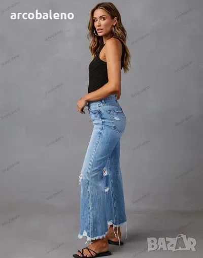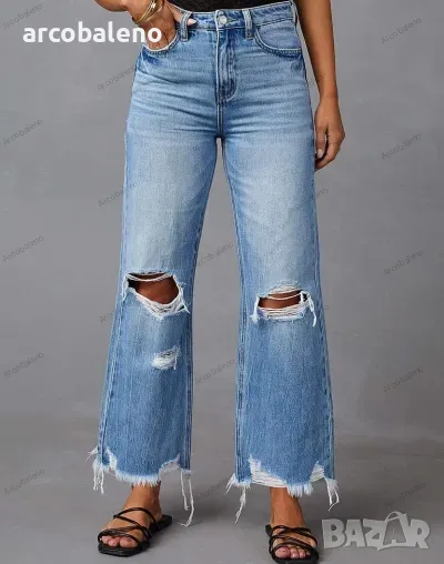 Дамски изпрани широки скъсани дънки