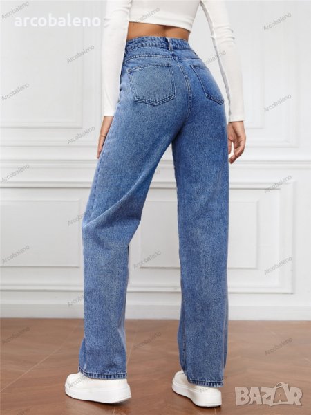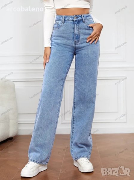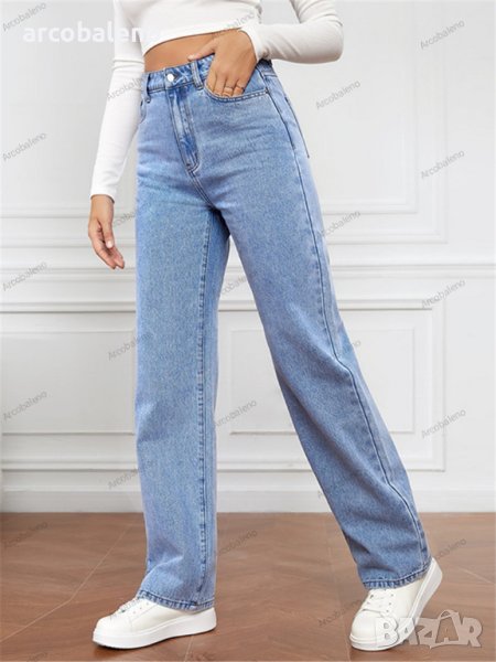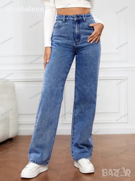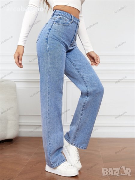 Дамски изпрани прави дънки с висока талия