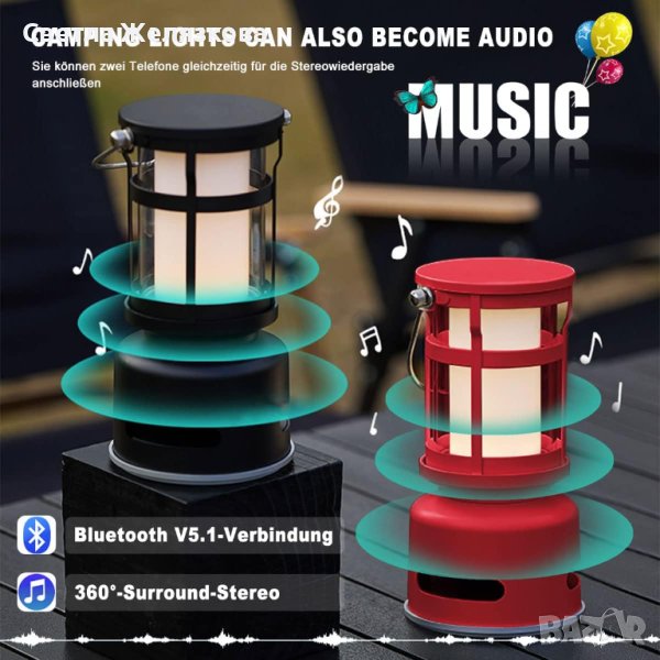 LED къмпинг лампа с блутуут колонка, 2 в 1