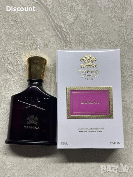 Carmina от Creed е флорален аромат с дървесен мускус за жени. Това е нов аромат. Carmina е лансиран през 2023 г. Връхните нотки са черна череша, шафран и розов пипер; средни нотки: майска роза, божур, теменужка и кашмирено дърво; базовите нотки са мускус, амброксан, смирна и тамян.