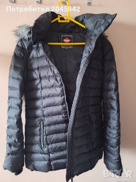 Дамско черно яке с пух Lee Cooper.Сваляща се качулка,странични ципове на ръкавите.Дължина гръб-75 см. ,ширина под мишници- 53 см. ,дължина ръкав-68 см.Отлично състояние,като ново,без забележка.Размер -L.