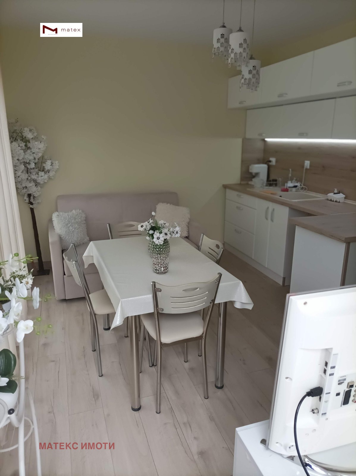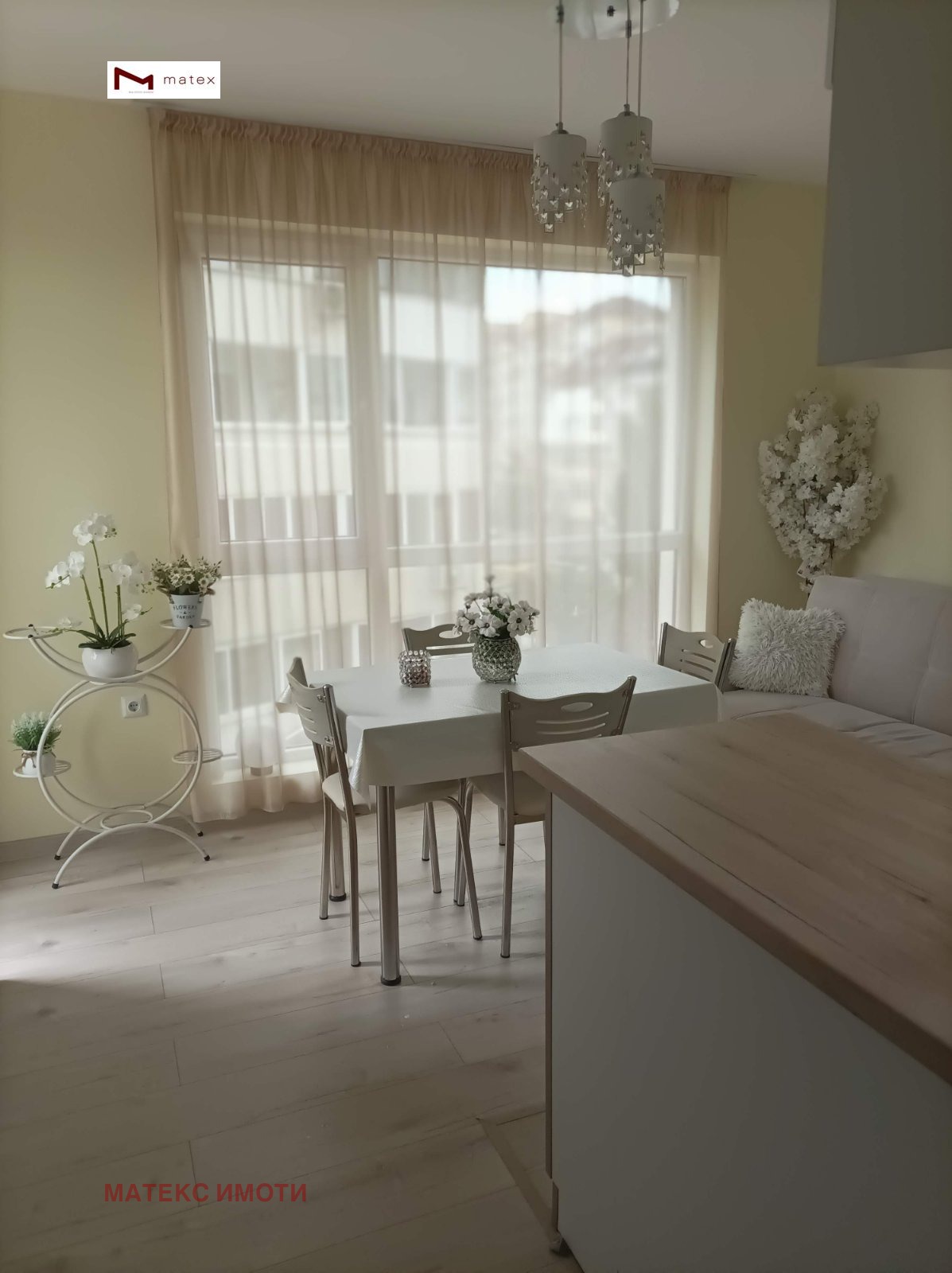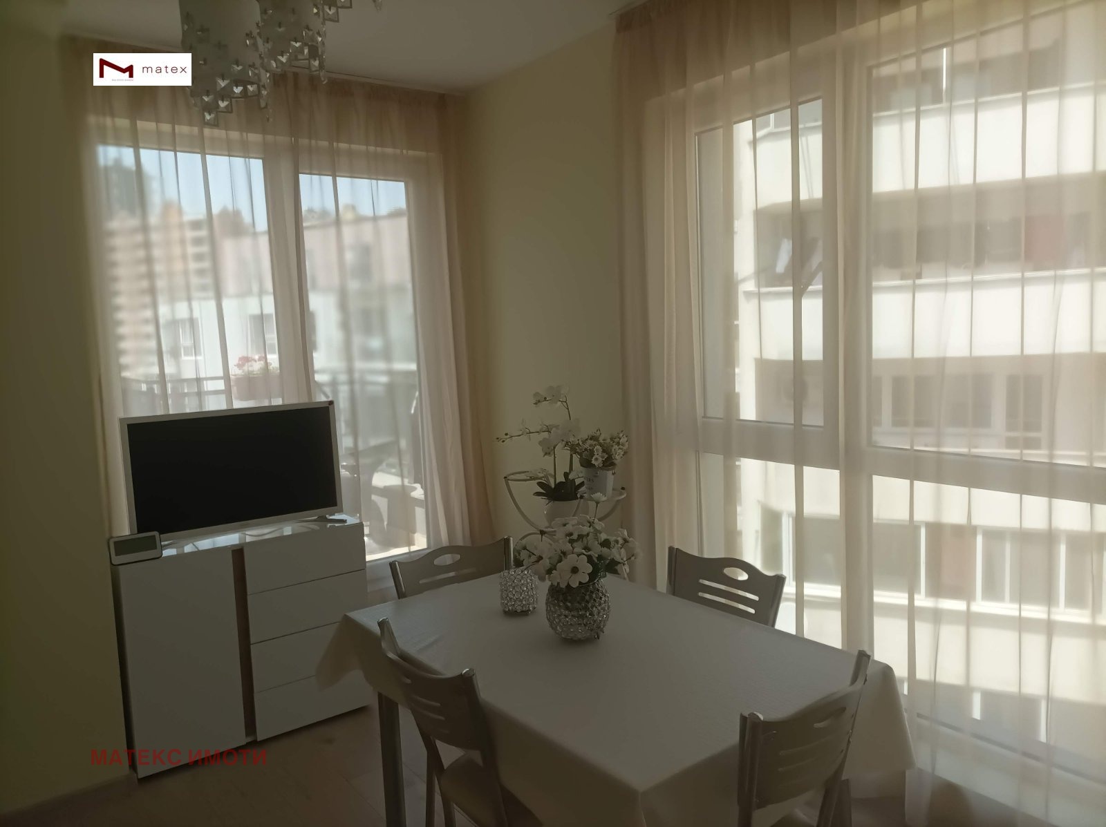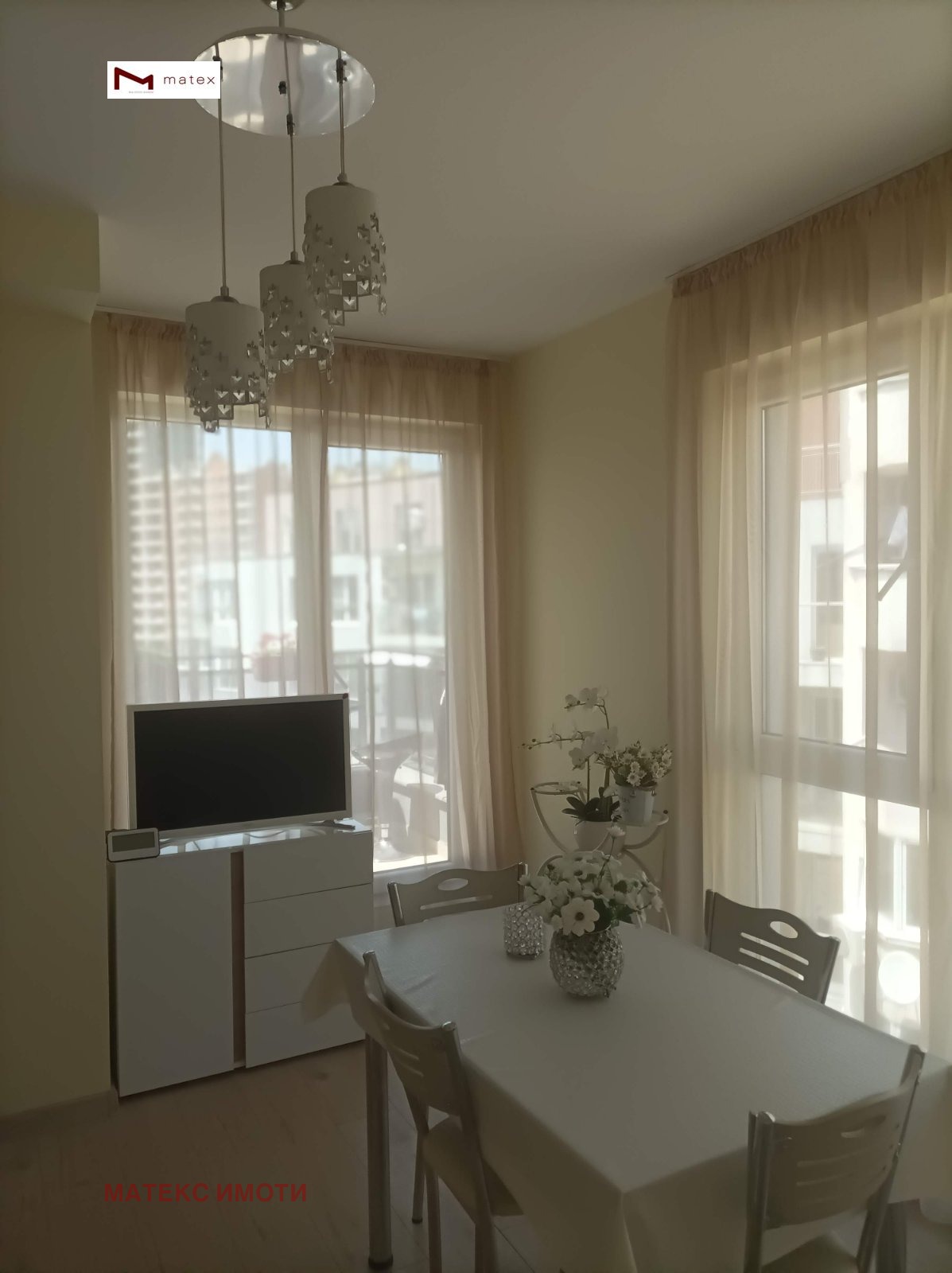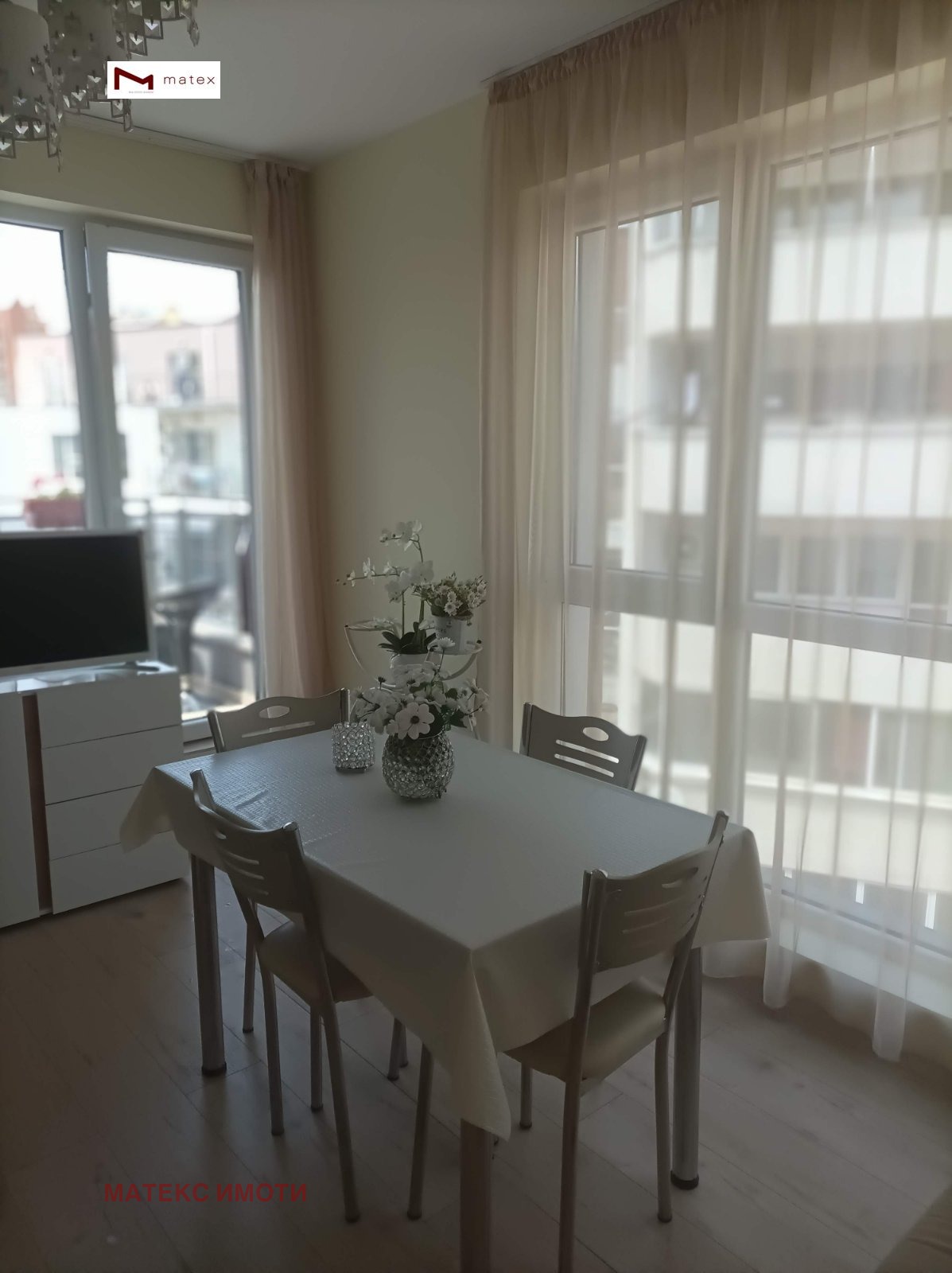 РАЗКОШЕН ДВУСТАЕН ТУХЛЕН ОБЗАВЕДЕНАПАРТАМЕНТ!!! ГОТОВ ЗА НАНАСЯНЕ!!! Матекс имоти и брокер Петя Касабова предлагат за свои клиенти за продажба двустаен апартамент в квартал Победа. Жилището е ситуирано на пети етаж от щестетажна сграда (непоследен етаж) в сграда с акт 16. Предлага се с чисто ново обзавеждане, качествени материали и мебели. Имотът се състои от входно антре , баня с тоалетна, дневна 15 кв.м. , спалня 9 кв.м., разкошна тераса с неповторима гледка и простор - 8 кв.м. и втора тераса към спалнята.