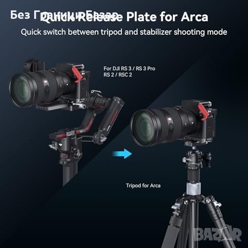 - Интегрирана бързосменяема плоча за Arca: Улеснява бързото монтиране и демонтиране на камерата.