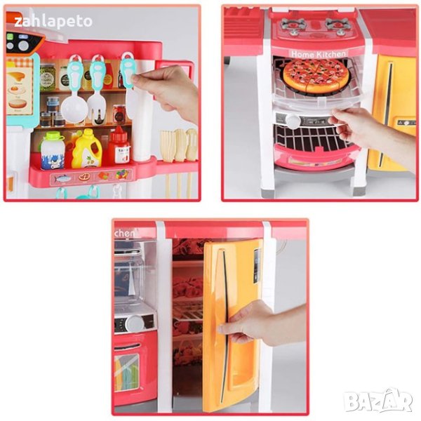 Еднометрова мултифункционална детска кухня в розов цвят. Страхотен модел с много функционалности, чрез които детето Ви ще се