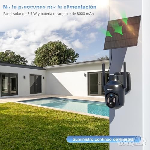 - Слънчева WiFi охранителна камера Xega: Външна, безжична със соларен панел.